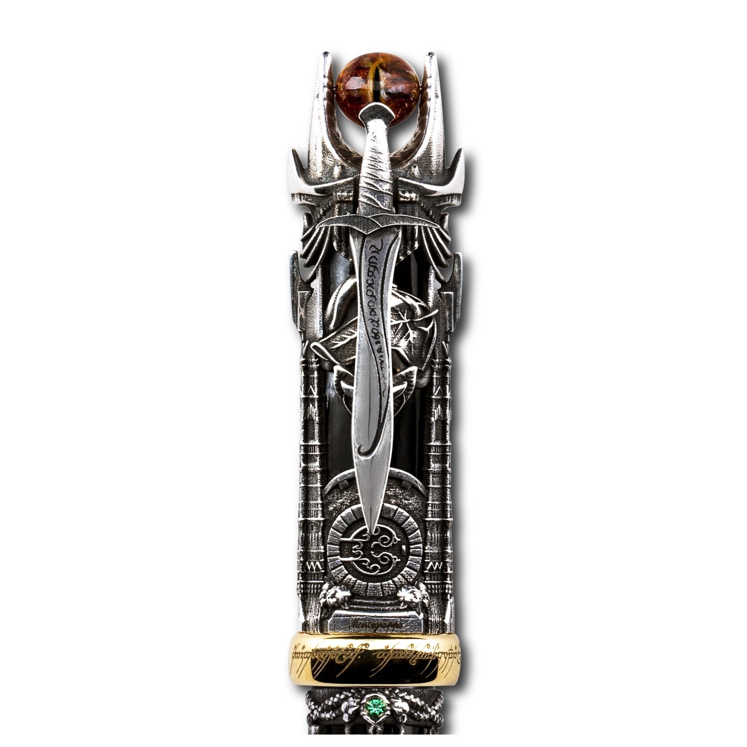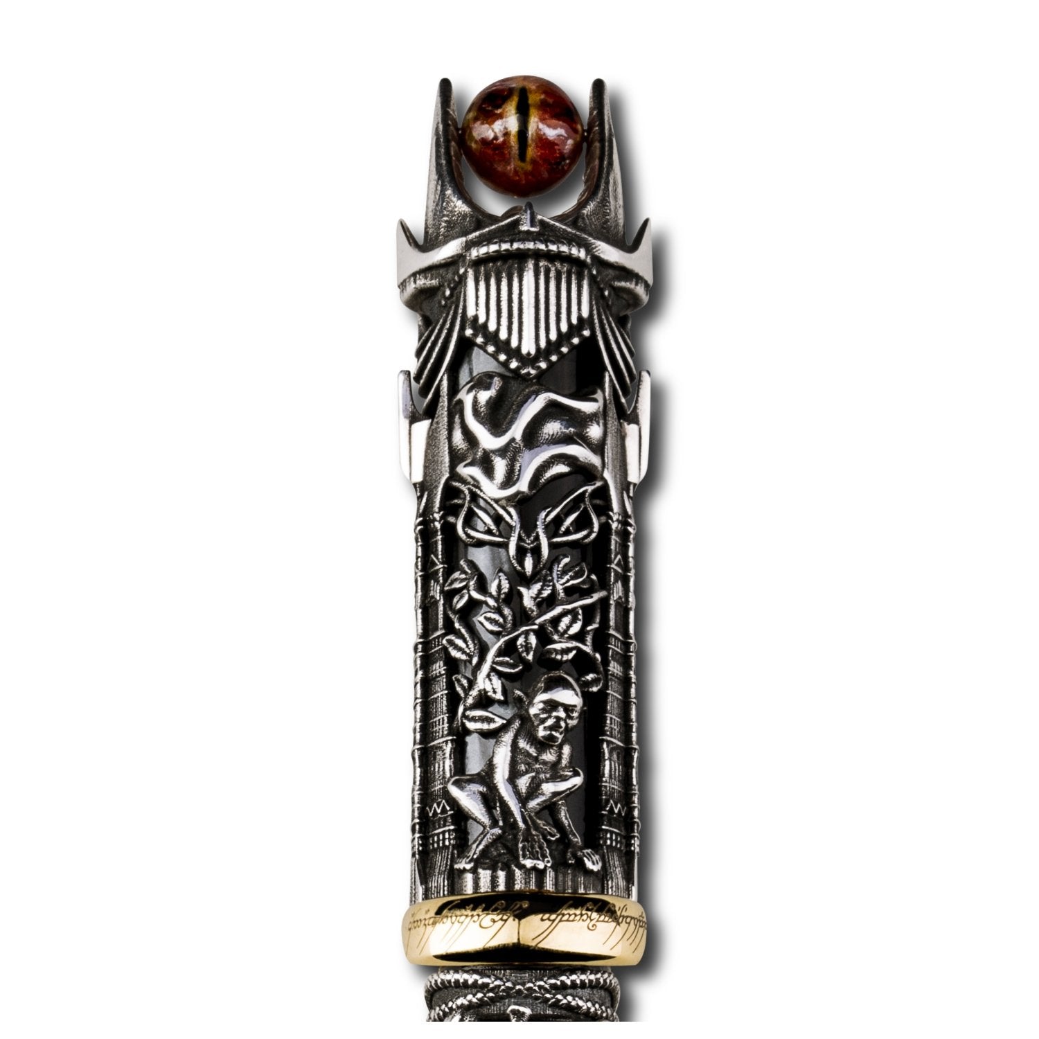 Montegrappa, makers of the world's most magical writing instruments, has created an homage to Peter Jackson's masterful film trilogy with this stunning hand-crafted limited-edition Sterling Silver pen. Available as a fountain pen and a roller ball pen, this work of art includes more than two dozen Middle-earth motifs in what is arguably one of the most lavish tributes ever paid to this cinematic classic. You'll immediately notice the Eye of Sauron at the top of the pen's cap and the One Ring at the cap's base; look closely and you'll discover other finely crafted elements including Sting, Gollum, and many more.