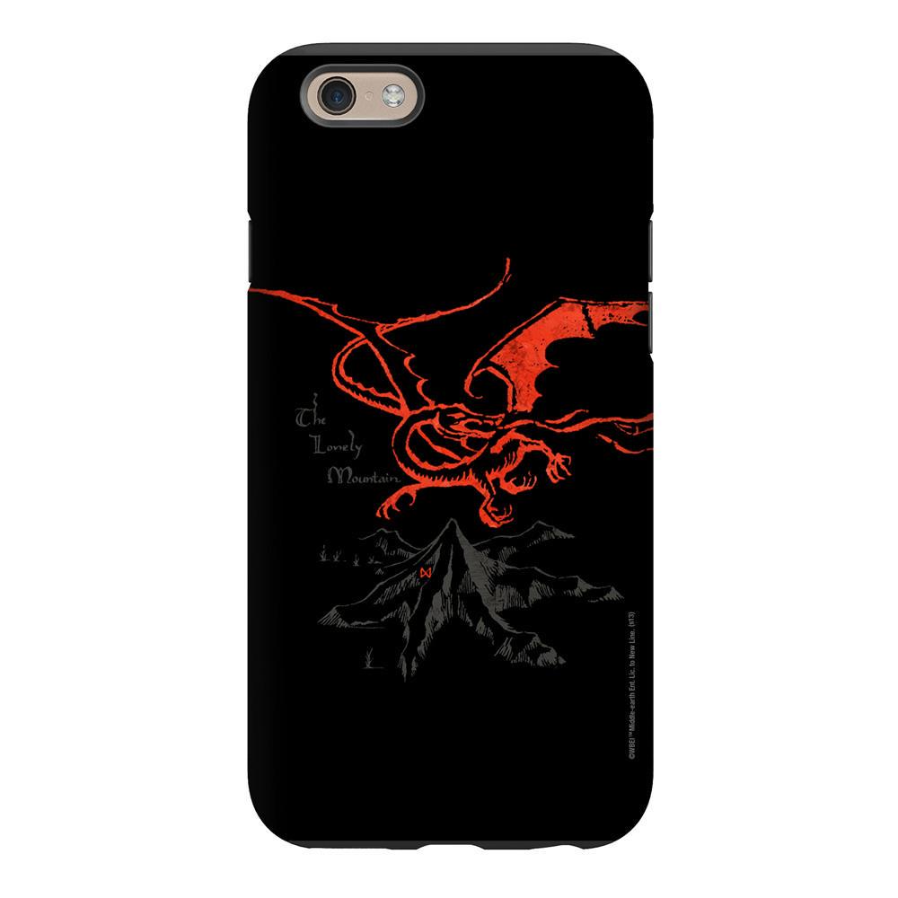 This phone case features the fearsome dragon, Smaug, above the Lonely Mountain in the lost Dwarf Kingdom of Erebor. This stylish case will protect your iPhone or Galaxy in style. The ultra-thin firm outer shell fully covers the back and sides of your phone while giving you complete access to all ports and functions.A thin padded silicone sleeve sits between the phone and the case, giving your phone an extra level of protection. Please note that due to the manufacturing process of these made-to-order phone cases, there are slight variations in the color of each case.