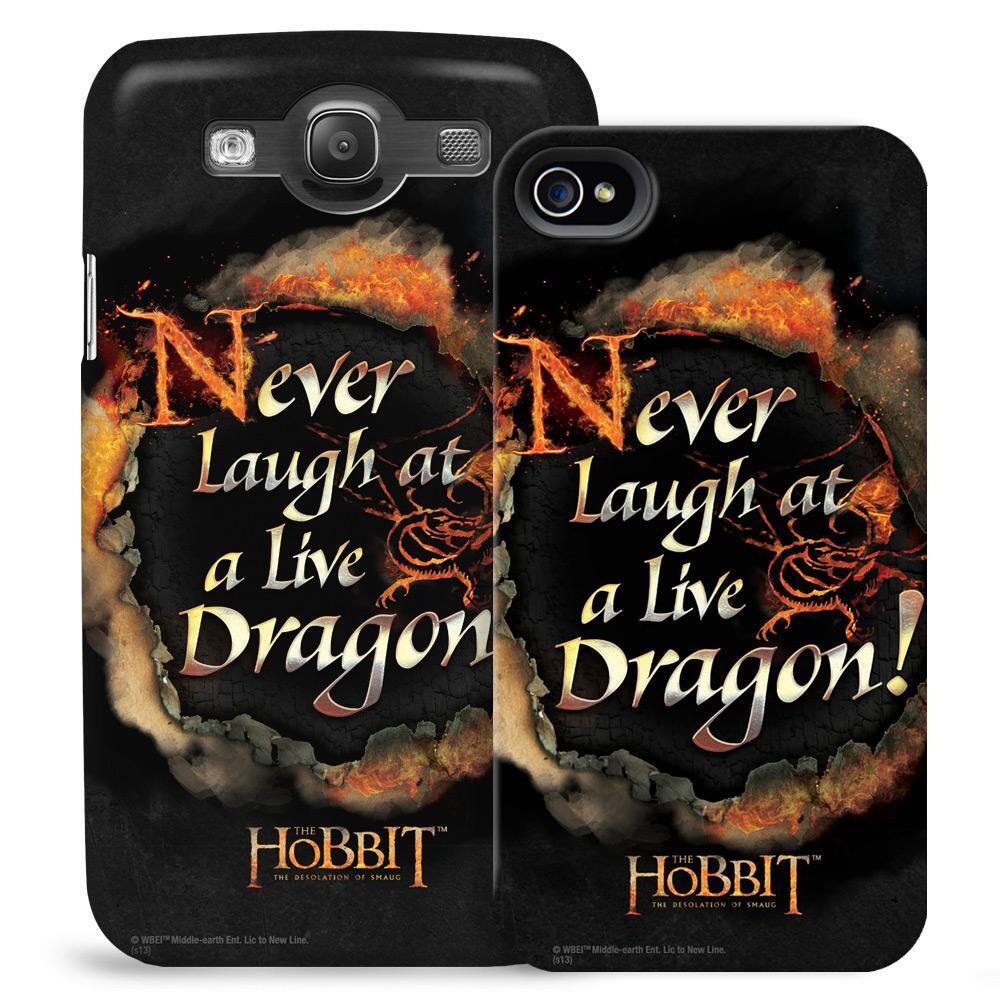Never Laugh at a Live Dragon! This phone case features the fearsome dragon, Smaug from the film The Hobbit: The Desolation of Smaug and will protect your phone in style. The ultra-thin firm outer shell fully covers the back and sides of your phone while giving you complete access to all ports and functions. A thin padded silicone sleeve sits between the phone and the case, giving your phone an extra level of protection. Please note that due to the manufacturing process of these made-to-order phone cases, there are slight variations in the color of each case.
