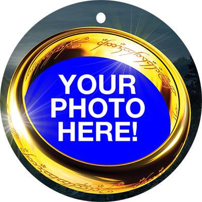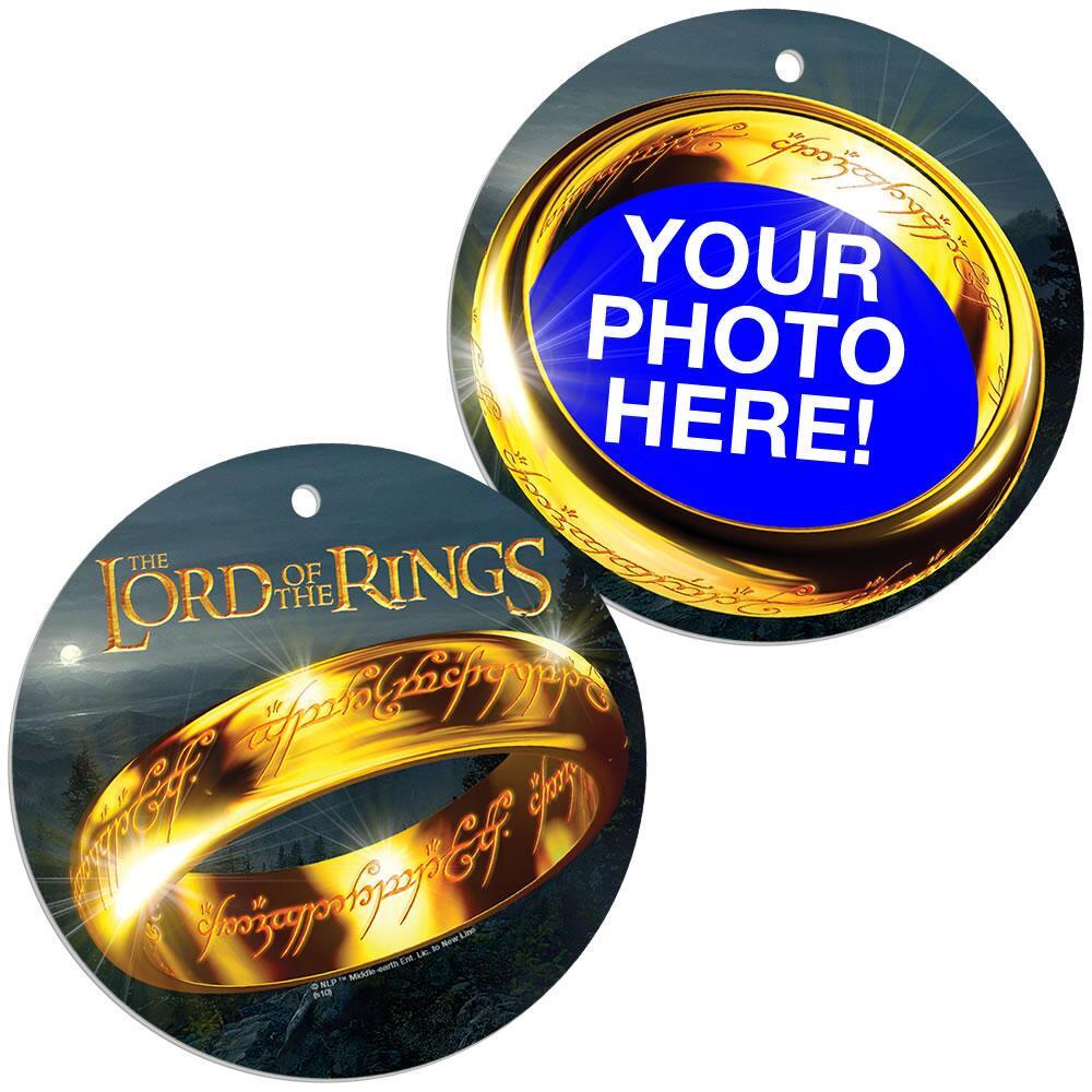 Exclusively ours, this The Lord of the Rings personalized ceramic ornament features the One Ring on one side and a spot for a special photo of your own on the other. Just click the "Customize It" button to create your one-of-a-kind keepsake or gift that will be cherished forever. Measures approximately 3 inches in diameter and hangs from a gold-colored cord.